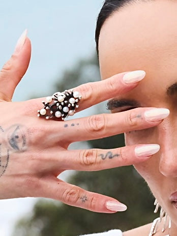 Anillos de plata con perlitas de agua dulce y oxidado interior.
